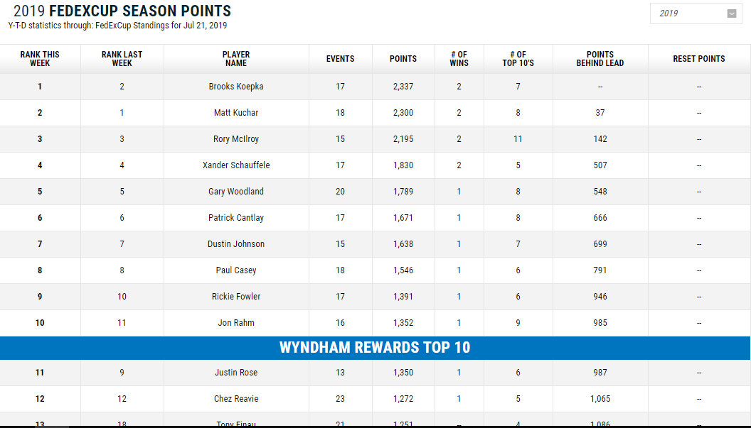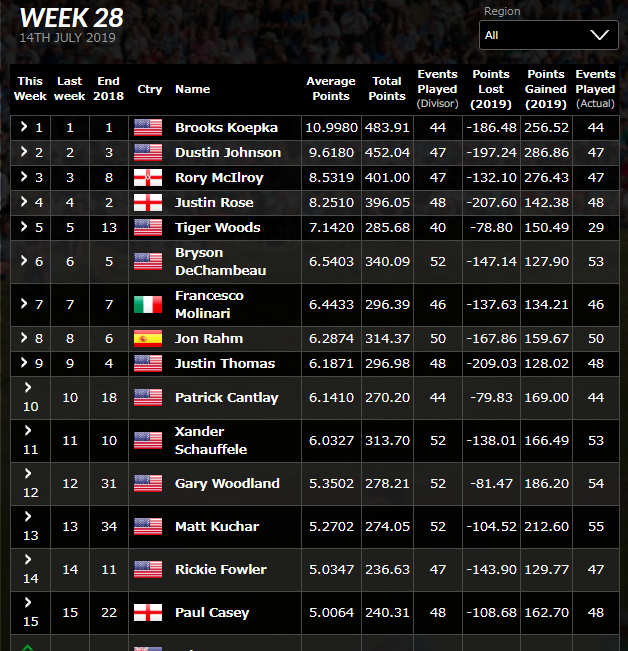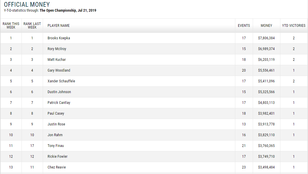 松山英樹の最新ランキング(2019/7/22現在) 投稿日: 2019年7月22日 著者: gdo-golf.net フェデックスランキング(2019/7/22現在) 最新の2018-2019年度のFEDEX(フェデックス)ランキングが更新されました。松山英樹選手は27位から29位にランクダウン。 フェデックスランキングをみる↓ マネーランキング(2019/7/22現在) 最新のマネーランキングが更新され松山英樹選手は先週の26位から28位にランクダウン。 最新のマネーランキング詳細をみる↓ 世界ランキング(2019/7/22現在) 最新の世界ランキングが更新されました。松山選手は先週の29位から変動なし。 最新の世界ランキングの詳細をみる↓ Related posts: 松山英樹の最新ランキング(2019/4/15現在) 松山英樹の最新ランキング(2019/5/13現在) 松山英樹の最新ランキング(2019/7/1現在) 松山英樹の最新ランキング(2019/7/8現在)