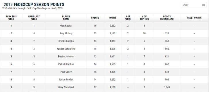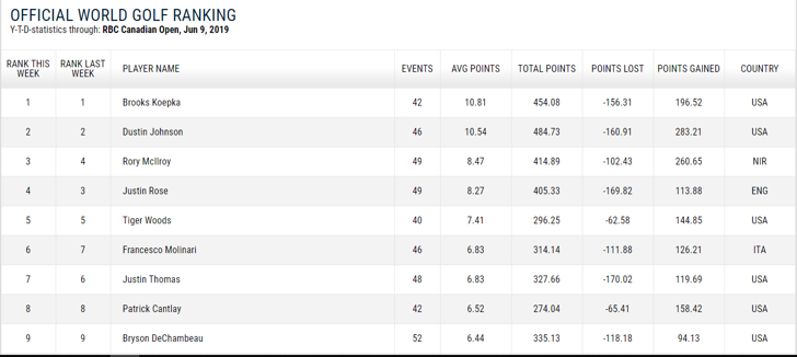 松山英樹の最新ランキング(2019/6/10現在) 投稿日: 2019年6月12日2019年6月12日 著者: gdo-golf.net フェデックスランキング(2019/6/10現在) 最新の2018-2019年度のFEDEX(フェデックス)ランキングが更新されました。松山英樹選手は30位から34位にランクダウン。 フェデックスランキングをみる↓ マネーランキング(2019/6/10現在) 最新のマネーランキングが更新され松山英樹選手は先週の29位から変動なし。 最新のマネーランキング詳細をみる↓ 世界ランキング(2019/6/10現在) 最新の世界ランキングが更新されました。松山選手は先週の29位から変動なし。 最新の世界ランキングの詳細をみる↓ Related posts: 松山英樹の最新ランキング(2019/1/21現在) 松山英樹の最新ランキング(2019/3/4現在) 松山英樹の最新ランキング(2019/4/15現在) 松山英樹の最新ランキング(2019/5/13現在)