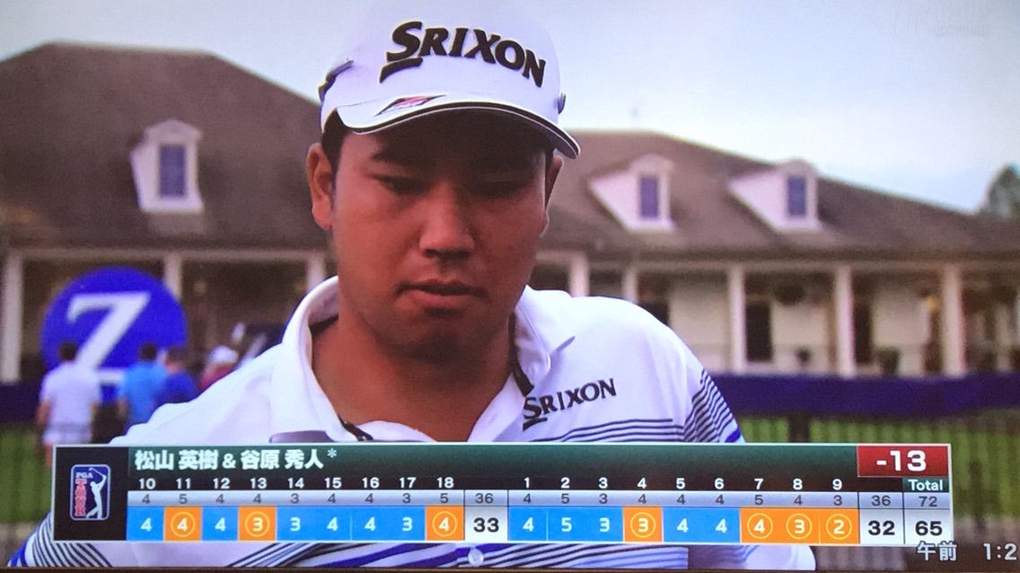 松山英樹と谷原秀人のペアは通算13アンダー32位で終えた。フォアボール形式(各選手が自分のボールを打ち、各ホールで良い方のスコアを採用)を7バーディ、ボギーなし「65」で締めた。